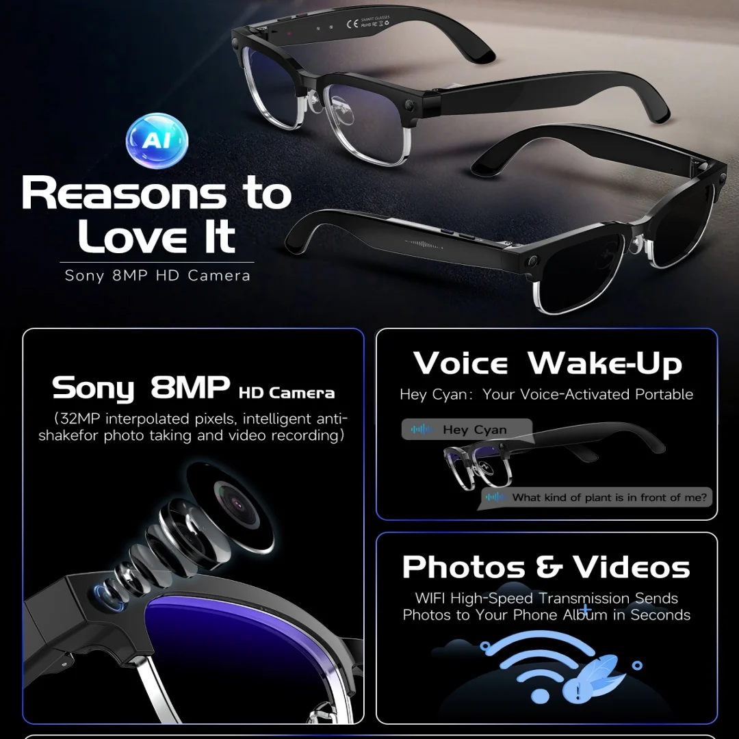 | CPU Model | AI Smart Glasses with 8MP Camera Video Recording |